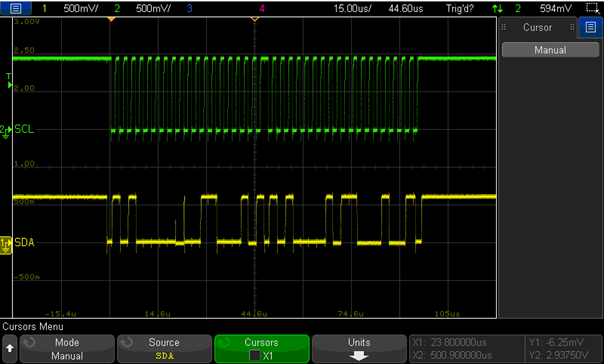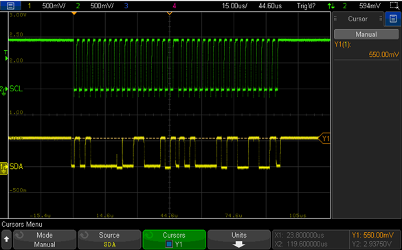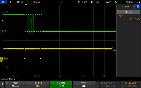 Under this condition, the SDA high level is measured to be 550mv.